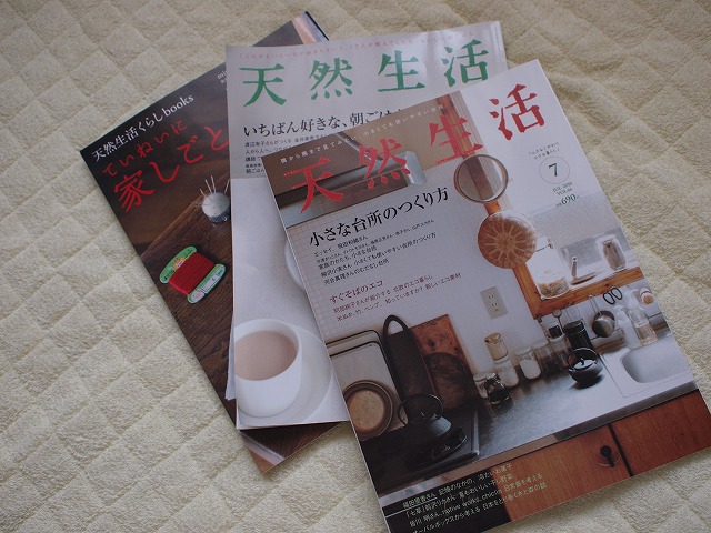 近年、創刊されまくってる『ナチュラル・シンプル・エコ』な暮らし雑誌やファッション雑誌。書店でパラパラっと見ることはあっても買うことはまずないです。なんか、ストイックすぎるというか、理想高すぎるというか…。天然生活は、暮らしと食にフォーカスしていることと、余白と写真と文字のバランスが読みやすくて最近買うように。紹介されている暮らしやインテリアも、現実離れしすぎていないのがいいんかな。今月の『小さな台所』特集は、古いおうちの狭い台所がメインだったので、社宅住まいのうちには身近で参考になりました。古くて狭くて不便な家に住んでなかったら、ものを持たないだとか、シンプルな暮らし方に興味を持たなかったのかもしれません。そうせざるを得ないなら、楽しんでやる方がいいですよね。