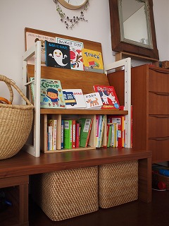 これに棚板を斜めに渡し、出来た段差に絵本を置く、と。