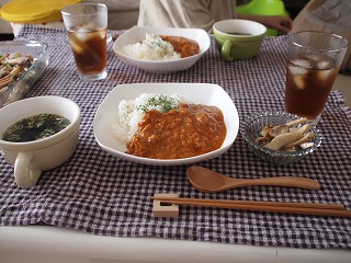 Yさんと息子のKくん、今週はうちでカレーランチ。