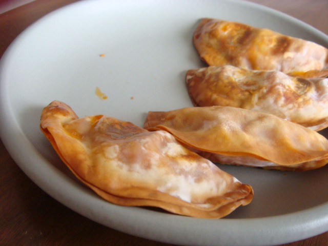余ったソースをこれまた余ってた餃子の皮に包んでサモサ風に。