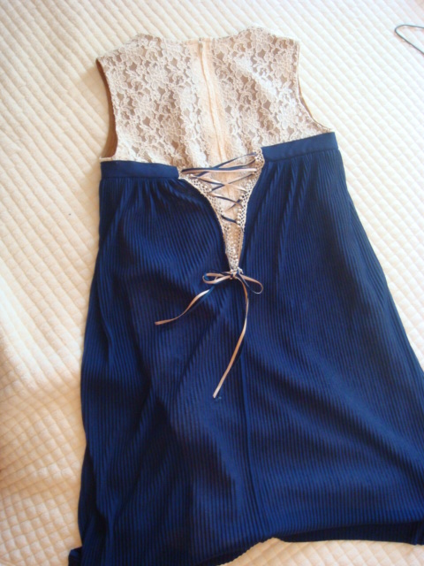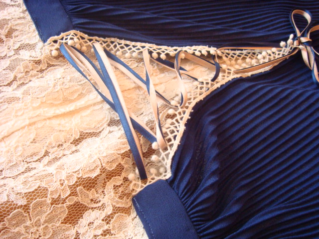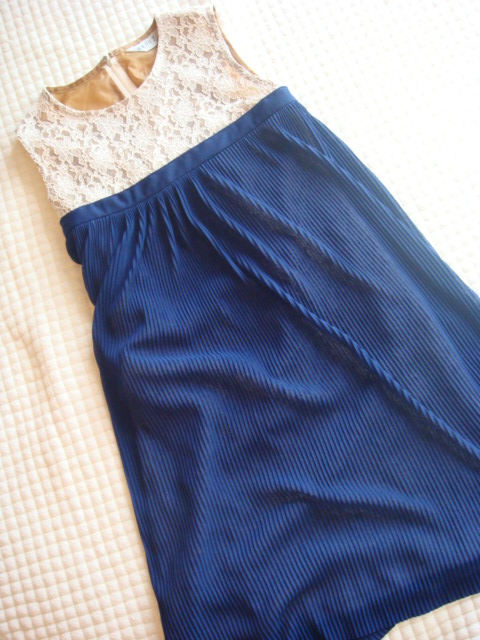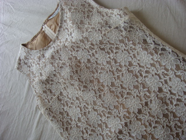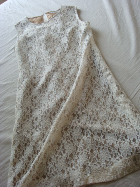 総レースのワンピ。裏地がくすんだゴールド。