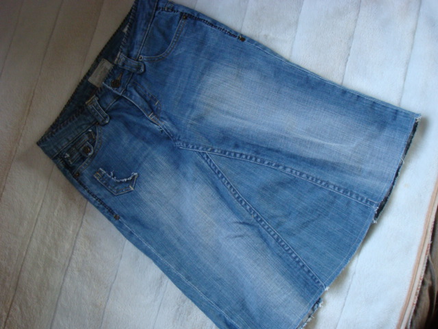 でもこの陽気、どうしてもスカートがはきたくて、デニムをリメイク。