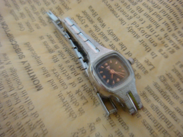 タイガーアイという石をフェイスに使った華奢時計。