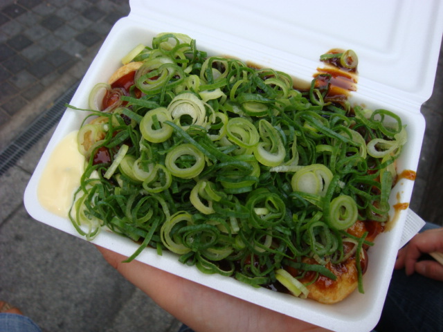 その後、休憩でアメ村で定番の三角公園のたこ焼き~うまぁ