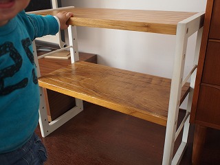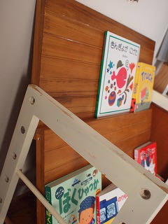 これに棚板を斜めに渡し、出来た段差に絵本を置く、と。