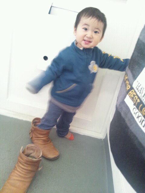 今はずいぶんと元気になり、咳も少なくなってにこにこが増えたかな。午後は私のブーツを履いてうろちょろしてました。夜になったら熱が上がらないと良いけれど…。皆さんも気をつけてくださいね。