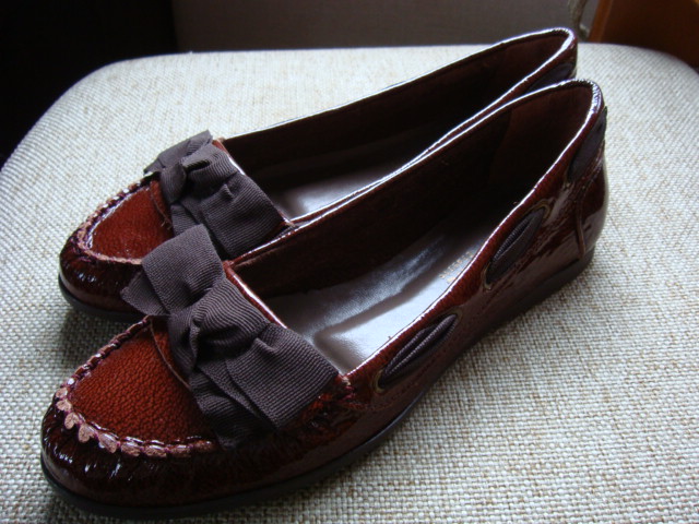 ブラウンエナメルできちんと感も残しつつ、歩きやすさ重視。