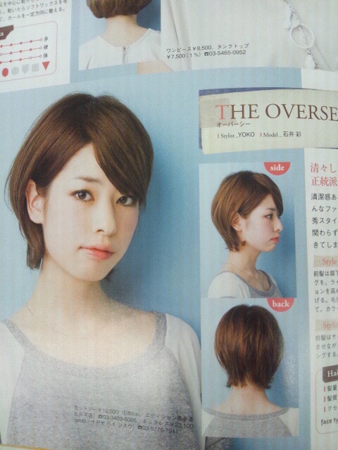 髪を切りました。鎖骨下くらいのパーマミディアムをショートカットに。ヘアカタを立ち読みし、こっそり写真を撮ったこの髪型でオーダー。こんなに美しい顔ではないので、全く同じにはなりませんでしたが(当たり前)