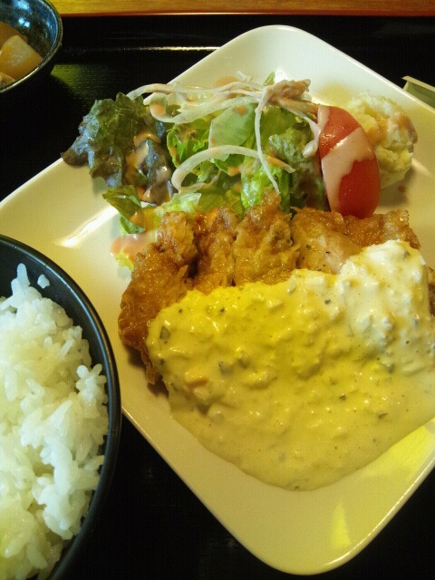 昼は図書館近くの定食屋にて、一人で外食。これまた久々過ぎる一人ランチ。ちっともオシャレではない、ガッツリチキン南蛮(笑)