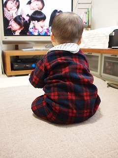 ↓おかあさんといっしょを見るときは、集中のあまり一人でお座りできる今日この頃。このフォルム、かわいすぎ、たまらん!!