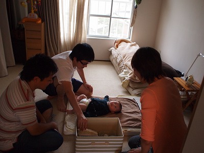 先日、2人そろって遊びに来た時も、おむつ替えの練習をしたいと言って、真剣に息子のおむつ替えをしてました。