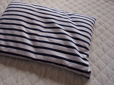材料は、生地がいいけどサイズが小さいボーダーカットソーと、誰も使ってないけど実はMOGUのフットレスト、中のパウダービーズを使いました。