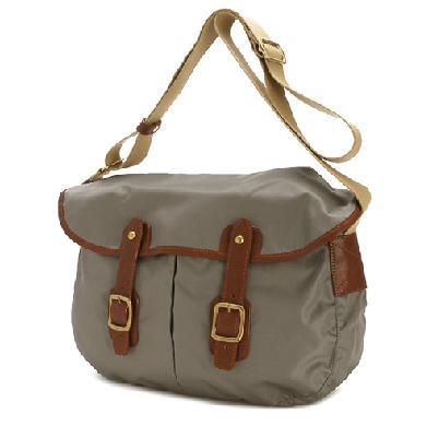 フェリージ系のきめ細かいふんわりナイロンで、見た目もカジュアル過ぎず◎。外ポケットもあるし使い勝手はいいかなと。だんなさんが持ってもおかしくない感じがこれまたいいのでは?