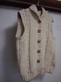 買ったのではなく、好きな毛糸を送って、夫のおばあちゃんが編んでくれたベスト。これが暖かく、手編み感がかわいくて、使える~!部屋でも外でも、大活躍。ばあちゃんありがと!