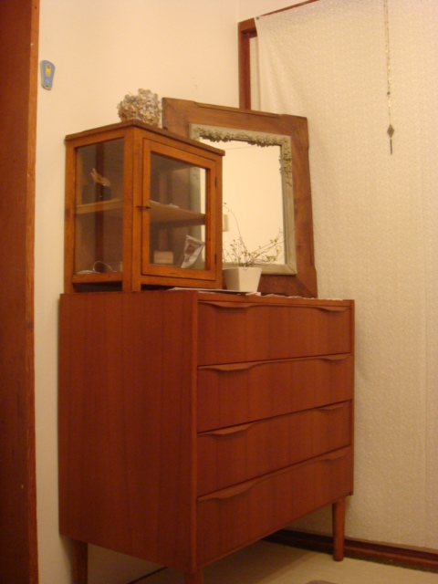 低めなので上にフランスの蚤の市で買った鏡とコレクションケースを
