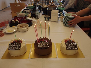義兄の2番目の子、つまり息子のいとこも同じ日に生まれ、さらにさらに、義母の誕生日(還暦!)というトリプルバースディなので、ケーキは3つ!